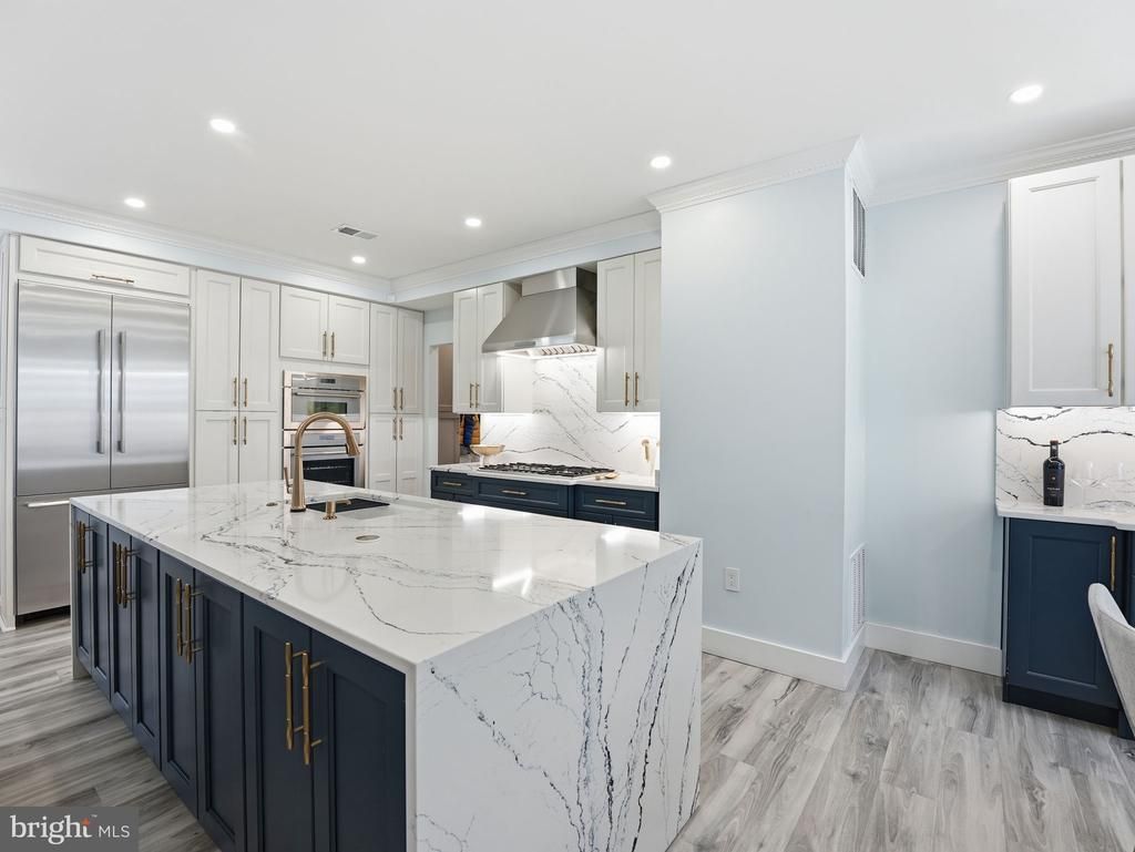 Step into a truly exceptional residence in the heart of Kingstowne—an extensively reimagined single-family home that sets a new benchmark for luxury living. Renovated down to the studs with no detail overlooked, this one-of-a-kind property blends timeless craftsmanship with contemporay innovation, offering a level of refinement beyond what one would expect. At the center of the home, a top-tier custom kitchen showcases exquisite wood cabinetry, striking Cambria quartz countertops, and a dramatic waterfall island designed for both everyday living and elevated entertaining including a FULL suite of high-end Thermador appliances. Frig, Double oven microwave with convection and air fryer capabilities (2022) delivers professional-grade performance. Sleek gas cooktop and a powerful 1200 CFM range hood ensures both form and function are perfectly balanced. A thoughtfully inspired mudroom and stylish coffee bar enhance functionality Every major system has been updated for peace of mind and efficiency, including a new roof, ridge vent and gutter guards (2022), new windows, tankless water heater (2022), and a new HVAC system (2025). The home also features a completely rebuilt wood burning fireplace, creating a warm and sophisticated focal point. Luxury continues throughout with designer-installed custom blinds, elegant quartz stone stairs and window sills are some of the meticulously curated finishes in every room. The primary suite is a private sanctuary, boasting a spa-inspired bathroom with floor-to-ceiling Italian porcelain tile, framed glass shower, and heated floors that extend seamlessly into the custom-designed luxury primary closet. All bathrooms have been fully redesigned with premium materials, frameless glass doors, featuring Toto toilets, Delta fixtures along with floor-to-ceiling porcelain for a modern aesthetic. The home’s thoughtful upgrades extend beyond the interior. Enjoy outdoor living on the newly expanded Trex deck, ideal for entertaining or relaxing. The garage is equally impressive, equipped with high-lift side-mounted openers and a Swisstrax flooring system that conveys with the property. Downstairs, the fully finished basement is an entertainer’s dream, featuring a custom-built bar complete with a Manitowoc ice maker, wine fridge with cabinets—perfect for hosting gatherings in style. All this and the home is also conveniently located in a cul-de-sac! This is, without question, one of the most highly upgraded homes in Kingstowne—a rare opportunity to own a completely turnkey property where luxury, design, and craftsmanship converge. A true standout poised to set a new standard and record value in the community.